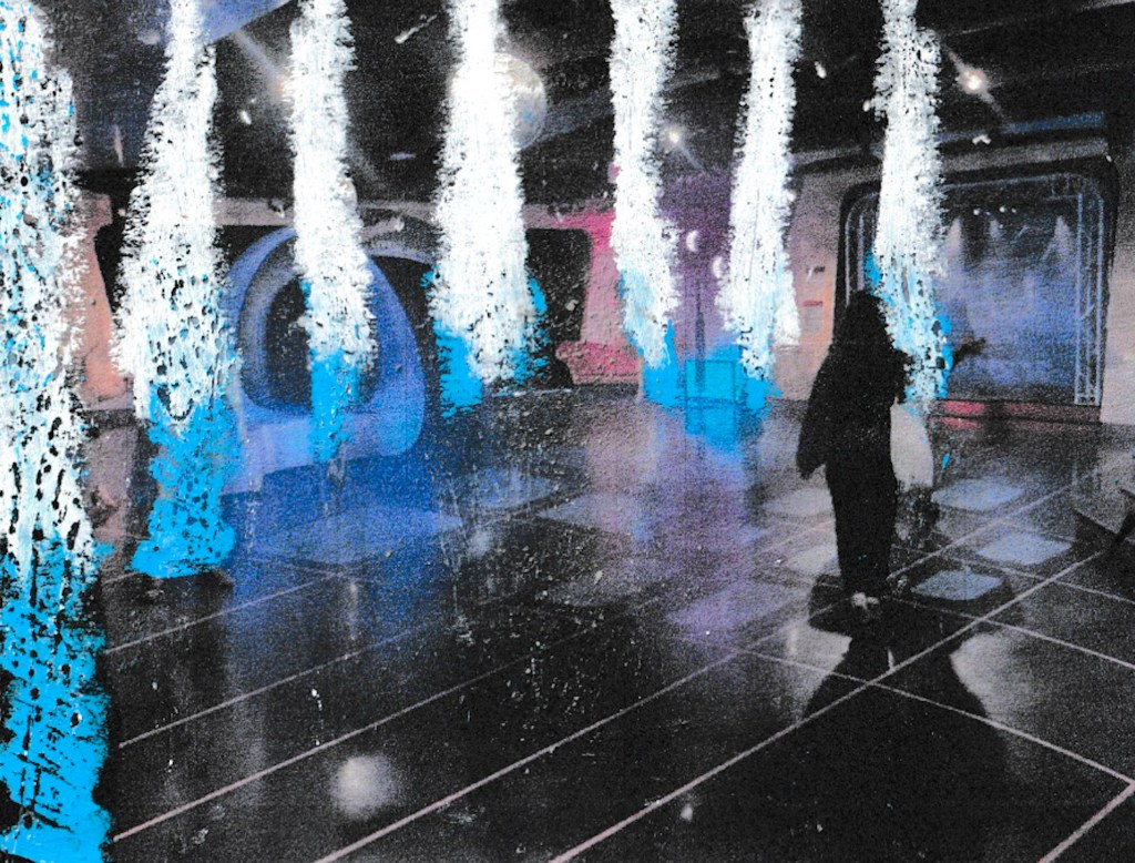 Painted formless figures haunt recent photos of emptied-out public spaces. As cel-animated smear frames, they perform various repetitive acts in these settings, with movements expressing the helpless, frantic energy felt in our current moment. Earth and organs are emptied, situations are fled. The figures become displaced from their locations, as their environments dissolve and their printed record evaporates.