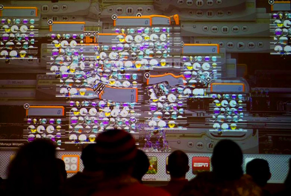 Jon Satrom’s Prepared Desktop leverages the digital defaults and mundane functions of our technologies. Scripts, presets, and glitches collide as he tickles the edges of his OS.